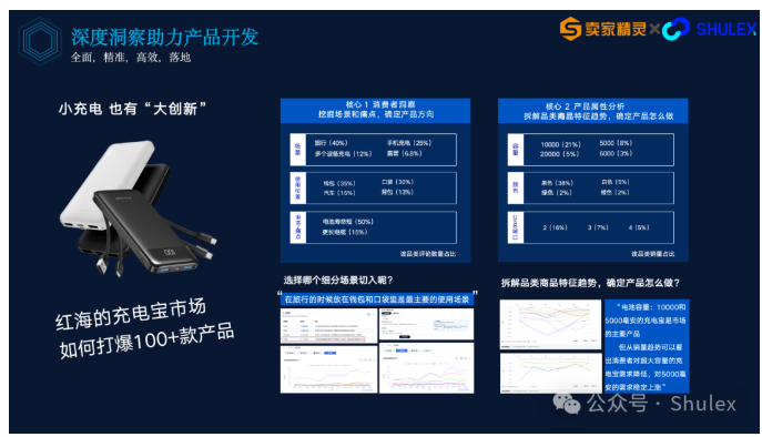 消费者洞察结论可以运用到产品上线的前中后,我们来一个场景-产品开发。针对便携充电设备进行分析洞察,我们取82个商品样本,分析Listing及评论内容。