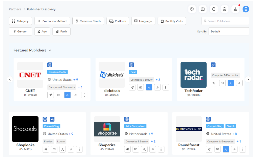 · 资源整合:聚合全品类推广者资源,PartnerBoost将100K+联盟客、65K+红人,按品类、粉丝画像、转化数据等维度分类,为品牌方提供精准筛选工具;