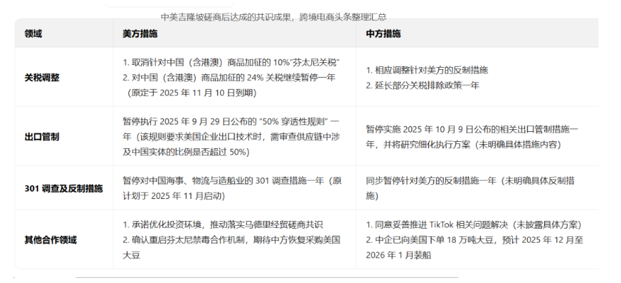 - 中方将暂停实施10月9日公布的相关出口管制等措施一年,并将研究细化具体方案。